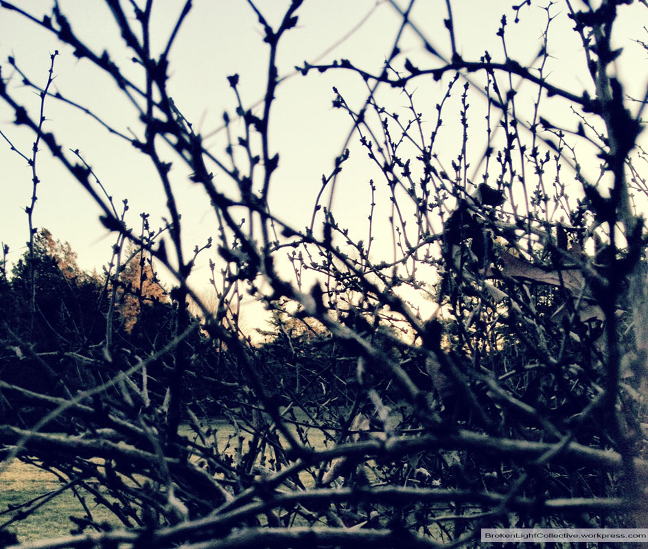 About this photo: Gardens can be a place to find some serenity and most of the time we think of visiting them during the Spring, and the summer, perhaps even during the fall. It was nice to visit this garden during the winter in twilight. It helped ease my winter blues. The sun simply hovered over the trees and twigs casting the sky brightly and everything else dimly lit. Things might seem to be distorted at times, without any logical reason, but nature can help ease those frustration knowing that it too goes through seasonal changes (the ups and downs). There’s beauty in every emotion, every season, whether we feel up (and look to the bright sky) or down (and look to ground not wanting to keep going). Nature is always there. For my pictures I mostly use my iphone and the app camera+.