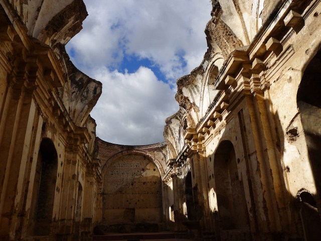About this photo: “Antigua is one of the most beautiful cities in the world. A UNESCO Heritage Site, this colorful Guatemalan town has seen endless amounts of death and destruction. Several earthquakes have destroyed the beautiful colonial buildings and churches over time, yet they were continually rebuilt. The magnificent ruins of the destroyed cathedrals were left for the world to see and enjoy while the new constructions were built alongside them. This picture was taken of ruins I saw while visiting Antigua. I love how the ruins open up to the bright blue sky and the patchy, powderpuff clouds bring an overall sense of exhilaration and beauty. Antigua was truly a magical place that brought me peace and joy.”