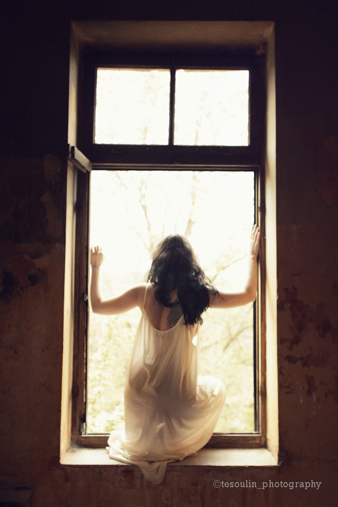 About this photo: “This photograph is from a series I call “Inhabit” that explores the theme of traveling back through emotions. It is a story unfolding in three parts: First part, Intrusion. The exploration begins. A spirit comes across a house, a trip down memory lane. Second part, Contemplation, which includes this photo. The little spirit can’t decide if it should stay here or leave this empty shell… where to go? Enter part three, Escape. Things may end, things will go away. Faint footprints spirits leave, and to be captured can mean freedom when fragility forms strength.”