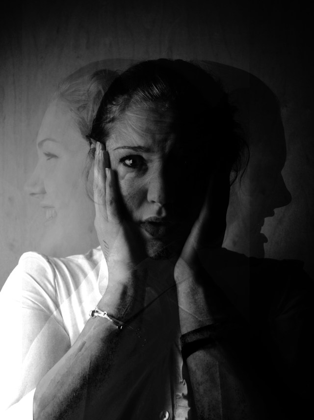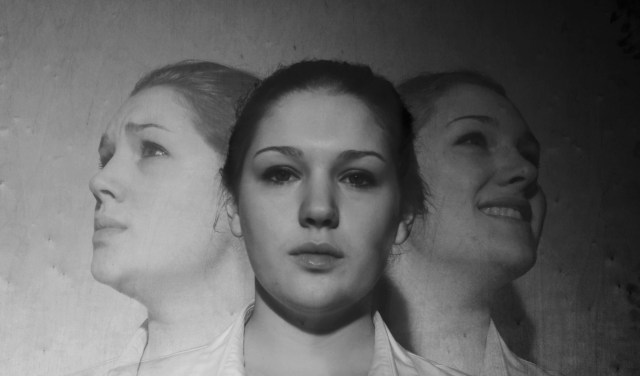 About these photos: “This was for my A2 Exam and I had the topic of ‘Transformations.’ I chose to focus on people with Bipolar, as not many people are aware of it, and I was interested in the ways people who have it go from one to another of different emotions. I asked people around at school and they all had very varied uncertain views on it, and after reading blogs of people who have the condition, who felt they needed to hide away, I wanted to create art to show them that they don’t have to, they can still be the same and not hide away being scared of not being accepted. I was inspired by reading blogs about people who had bipolar saying they felt they needed to hide their condition, and that it was tearing them apart. From overlaying these photographs I then went on to complete a number of different media experiments to look into how I can express these bloggers’ voices about their condition. I was also inspired by the work of Agnes Cecile. I completed 3 canvases for my Exam Final Piece with quotes from the bloggers.”