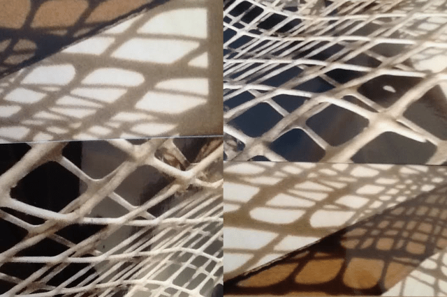 About this photo: “As a collage artist, I collect found objects to use in my art pieces. I found a large piece of heavy white plastic, brought it home and put it in my foyer. It sat there for a while and one day I saw the shadows as they appeared in a particular light and took several photos in different lighting. I then combined the photos to make what appears here. I printed the originals, connected them and then reshot them to become one photo. The street object became transformed with photography. When I first began photography it was very scary to take my camera outside where I could be seen, put my camera up and shoot. Similarly I felt exposed the first few times I picked up something from the ground. I believe that being creative and following your intuition, or your muse, is an act of courage and leads to transformation and inspiration for oneself and others.“