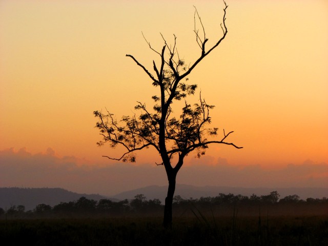 Awesome shot! I love nature photos. This one captures the etherial looking shades & colors of the hills. I like how the tree is in silhouette.