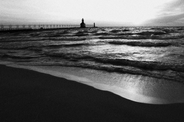 I grew up on the shore of Lake Michigan, and it is good to see this wonderful photo – I love black and white! – with the waves coming in. Thank you!