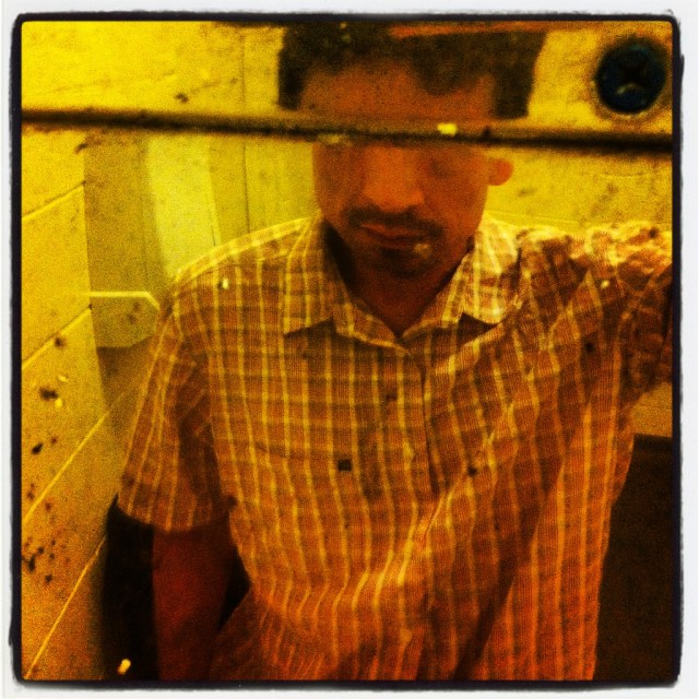 About this photo: “This photo is a visual depiction of how I feel. It is skewed and disturbing because there are no eyes in the image of myself. It was shot in the stained metal mirror of the public bathroom where I bathe and shave. I was recently kicked out of my house and am living in my car. I have not seen my kids in 6 months. They won’t even talk to me. They are all in therapy. Two of them are on psych meds. I am very worried about them and how I caused their anxiety, fear and depression. I feel abandoned and alone and angry at myself for acting out over the years. I never knew life could be this horrible. I still have a job, am seeing a psychiatrist, and taking my meds, which help me from going over the edge, but other that I am all alone and filled with despair and remorse.”