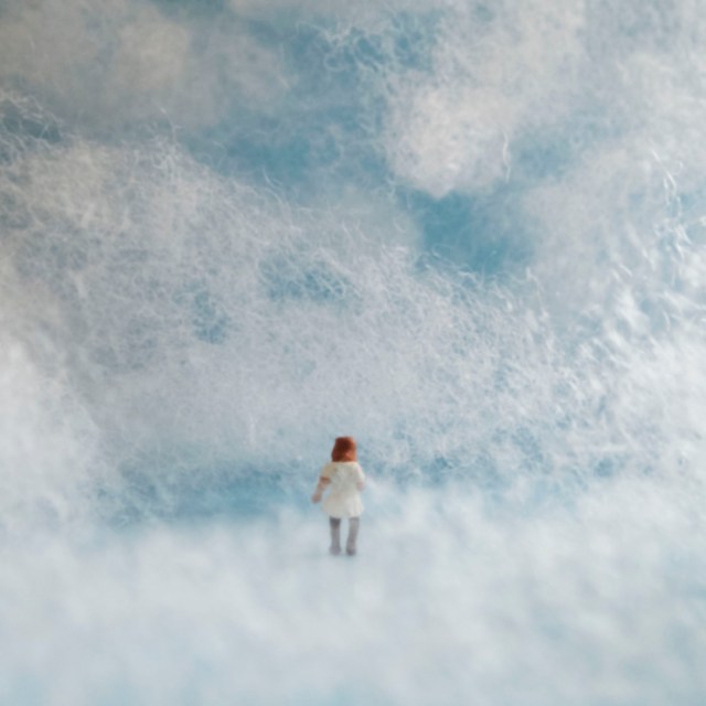 About these photos: “Originally part of my series, ‘Melancholy’, these pieces have now been broken off to form their own series. ‘Distant’ features the dollhouse figure in the white dress, while ‘Melancholy’ features the dollhouse figure in the blue dress.