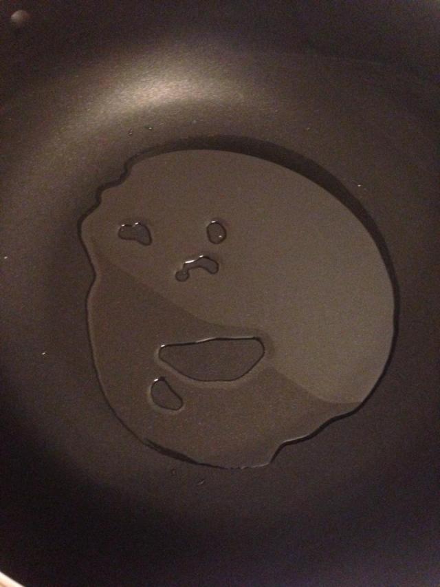 About this photo: “Finding smiling faces in an evening meal. “Happy Face Oil In Frying Pan” 2015 NYC.”