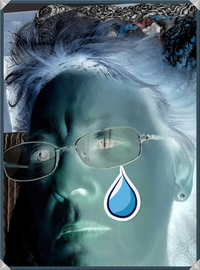 About this photo: “I was editing this photo for another reason and by chance ended up with this image. The tears were in my eyes but the teardrop hadn’t fallen yet. So I photoshopped the tear that was about to fall. This photo depicts exactly what was going on in my mind, body and soul. I am always feeling blue. The white areas in this photo represent the high level of anxiety and panic that grips my mind day and night. The tear I cry is the physical pain that grips my body day and night. Mindfulness to be very honest only works for me sometimes. I must keep trying to turn the volume down however I can.
