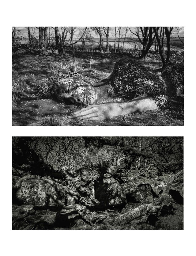 A study of a mud sculpture at Heligan Gardens & an image from Wistman’s Wood Dartmoor.