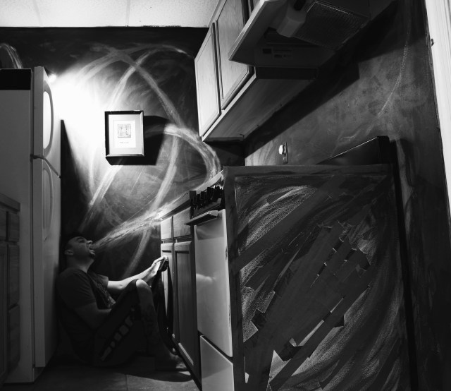 About this photo: “I took this photo of myself after a manic episode during which I had painted almost my entire basement apartment. It felt strange to have a place to sleep after sleeping in my car for a few weeks. The photo is representing my reflection of words that come out of my mouth, and me only thinking about what I said after and feeling tremendous shame, which starts the cycle all over again. I use the photo to remember to think before I speak or say nothing. Because I will end up on the floor again.”
